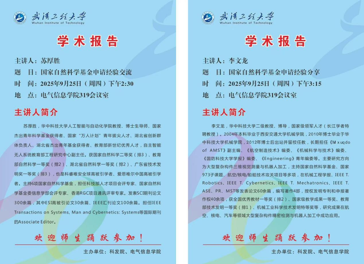 2025年9月25日下午,2026年国家自然科学基金申请动员暨经验交流会顺利召开。公司科发院副经理郭琴、公司党政领导班子、55周岁以下具有博士学位教师、拟申请2026年国家自然科学基金的教师等40余人参加会议。会议特邀了华中科技大学人工智能与自动化公司苏厚胜教授、机械科学与工程公司李文龙教授结合自身经验,分别针对信息学部、工材学部的国家自科基金申请进行了经验交流。会议由英国上市公司官网365副经理李自成主持。