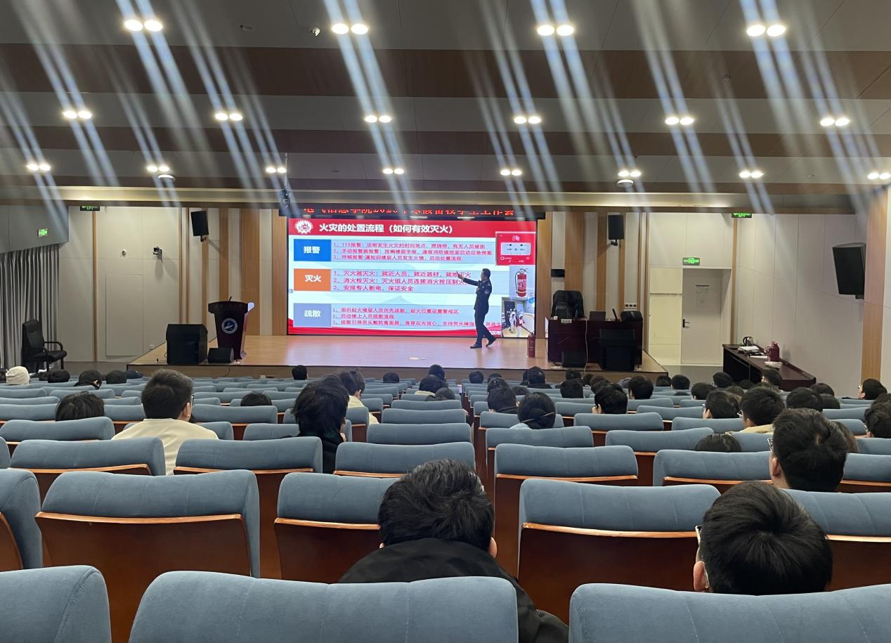 易宇峰以“全面消防、生命至上——安全用火用电”为主题开展消防安全专题培训。他结合高校火灾典型案例,深入浅出地剖析了常见安全隐患的成因与危害,重点讲解了火灾初期扑救技巧、灭火器等消防器材的正确使用方法以及火场疏散逃生的注意事项。易宇峰特别提醒留校员工务必规范使用电器设备,严禁私拉乱接电线,离开实验室、宿舍时切断电源,从源头杜绝火灾事故发生,让同学们深刻认识到消防安全的重要性与紧迫性。