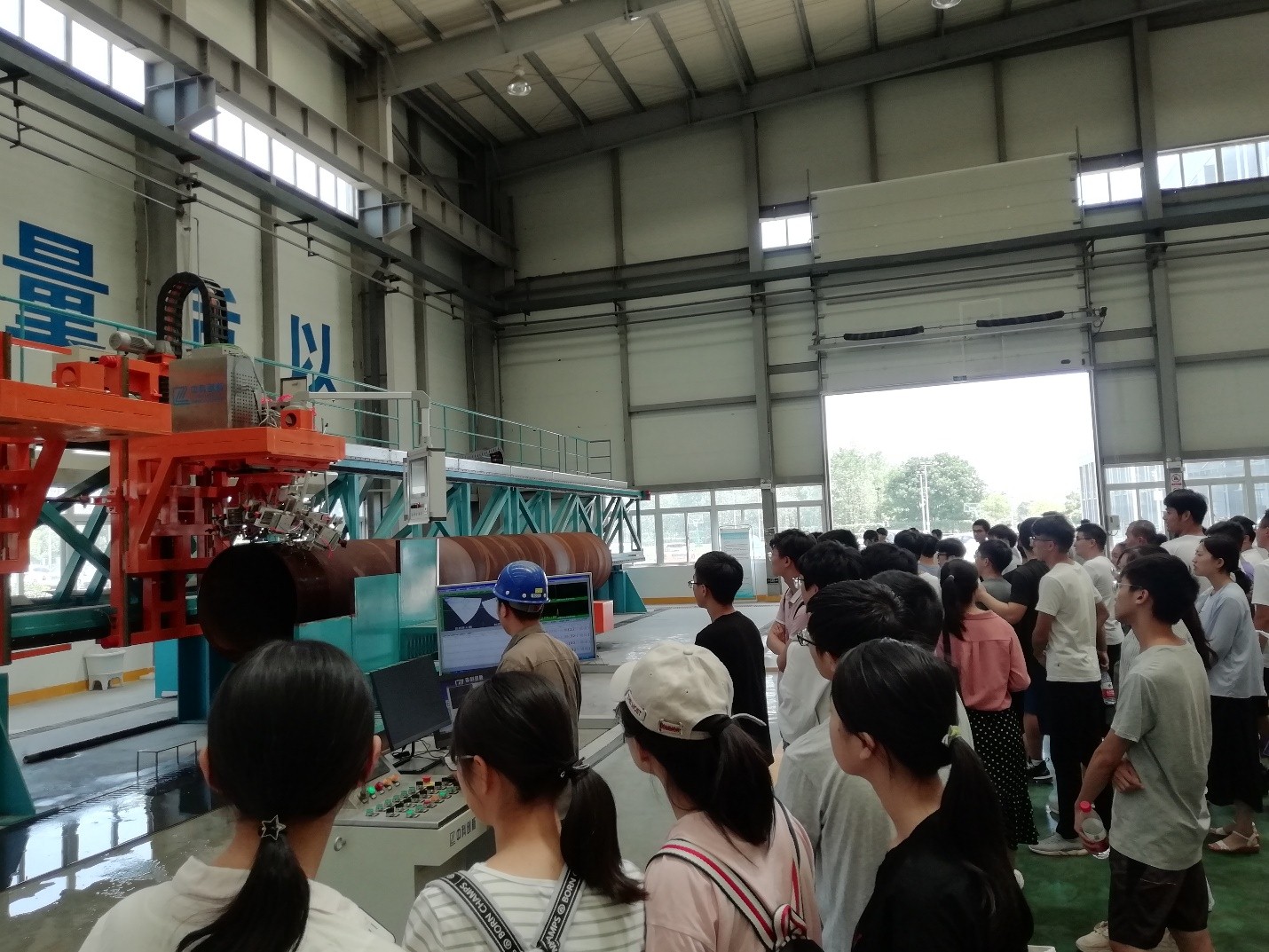 随后,在公司工作人员带领下,同学们参观了超声波便携仪器产品的设计、生产与检测流程,以及厂房中一批先进的自动化检测设备(包括国家重大科学仪器开发专项支持建设的电磁超声钢板自动探伤机等),并与工作人员请教、讨论了相关专业理论知识在工程生产与制造中的应用。