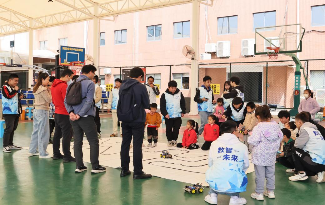 完成智能车的制作后,队员带领孩子们开展了一场惊心动魄的智能车循迹比赛。在讲解员的带领下,孩子们以小组为单位将智能车放在赛道上进行竞速比赛。随着比赛开始,孩子们充满激情的助威呐喊声回荡不绝,将活动推向高潮。
