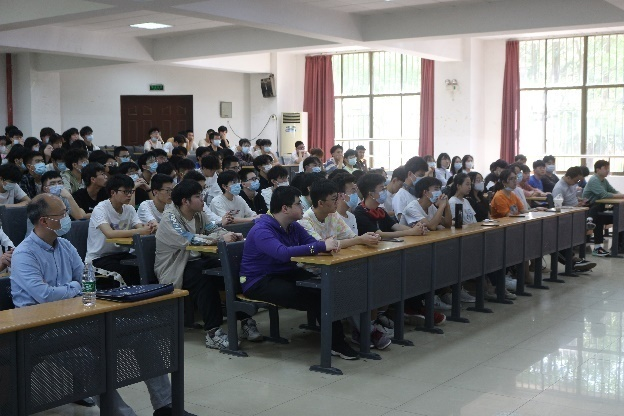 系副主任熊涛聚焦自动化专业特色赛事——“西门子杯”中国智能制造挑战赛展开了详细说明,他由浅入深的介绍了该赛事要求、参赛流程、赛题选取以及备赛流程,鼓励同学们积极参与,将专业理论知识转化为实践能力。有丰富竞赛指导经验的黄自鑫老师说:“竞赛与科普是专业发展的两翼”,他在讲解全国老员工电子设计大赛、中国机器人大赛等各类赛事的同时,还展示了自动化专业学长、学姐优秀作品、获奖证书以及科普事迹,告诉同学们不仅要利用专业知识融入学科竞赛,还要积极参与科普公益活动,成为科技文明的传播者。