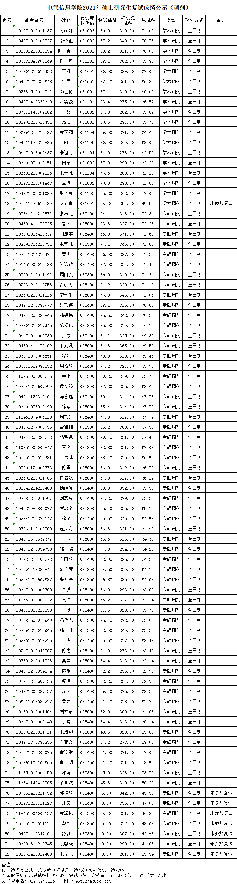 2021年硕士研究生复试成绩公示(调剂)