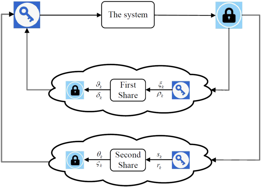 本研究工作将“数据机密性”提升到与状态估计同等重要的设计起点,将隐私保护作为状态估计的“第一原则”而非事后补偿,实现了数据安全与隐私的协同设计。本工作针对含有未知但有界噪声的信息物理系统,提出了加密集员估计理论框架,该理论框架允许通过公共网络将隐私敏感数据的状态估计外包至第三方平台。为了防止关键信息被窃取泄密,采用Paillier加密方案对数据进行安全加密,并分析量化误差产生的影响。在假设两个云平台不存在共谋的前提下,设计了基于(2,2)-门限秘密共享加密方案以降低计算负担、提高计算效率,并进一步证明了其安全性。通过仿真验证,该加密方案能够实现10-6秒级的计算速度,远低于同态加密的运行时间(10-3秒级)。