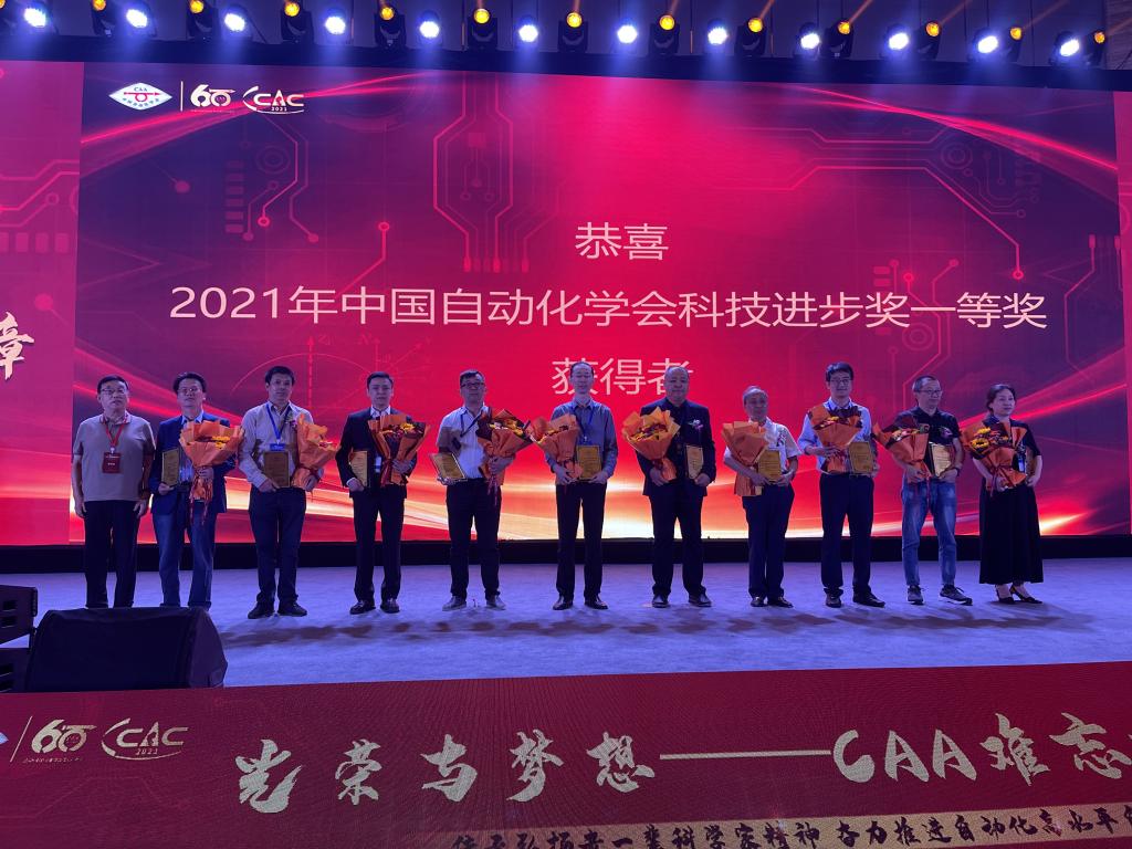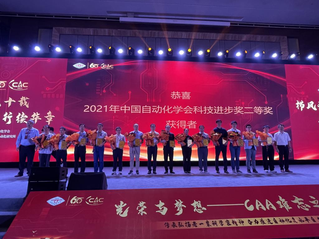 本网讯(通讯员 朱丽娜 季家友)滇池湖畔,海埂花园,群贤毕至。2022年8月12日-13日,2021年中国自动化大会暨中国自动化学会60周年会庆在云南昆明海埂会堂盛大召开。中国自动化学会自1961年在钱学森、沈尚贤、钟士模等老一辈科学家的倡议下成立至今,已发展成为拥有近8万名会员,具有重要国际影响力的现代一流科技社团。本次大会集中展出了一大批自动化领域创新技术成果,同时为庆祝中国自动化学会成立六十周年,弘扬老一辈科学家精神,表彰自动化、信息与智能科学领域做出杰出贡献的优秀科技工作者,大会举办了题为“光荣与梦想——CAA难忘之夜”颁奖盛典。公司洪汉玉团队科技成果“图像处理先进方法及产业化应用”荣获中国自动化学会科技进步一等奖,这是公司首次荣获中国自动化学会科技成果一等奖,本次授予全国一等奖10项,柴天佑院士为洪汉玉教授颁奖。李自成团队科技成果“油气开采过程关键参数全量程高精在线测量与控制装备”荣获中国自动化学会科技进步二等奖。