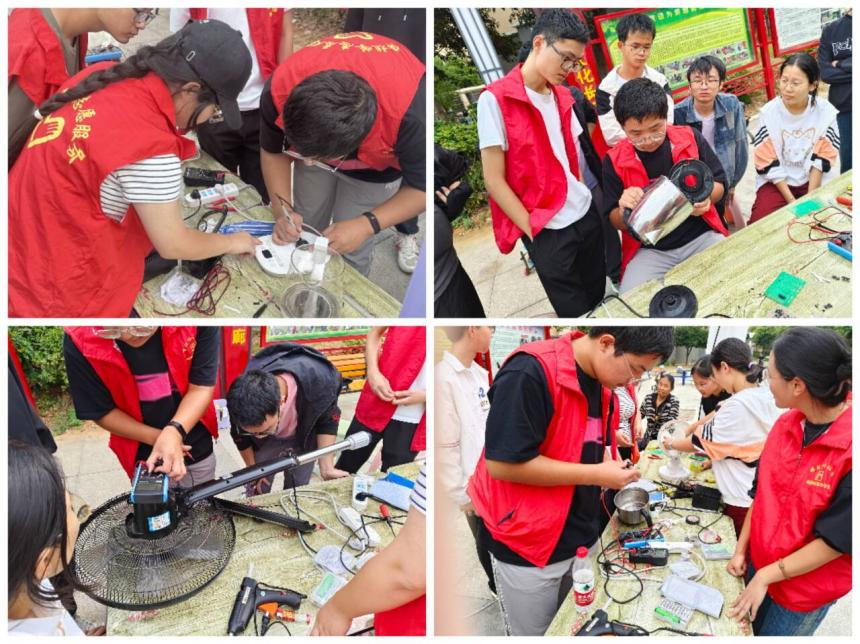 在社区文化长廊前,志愿者设立了“电器义务维修”便民服务点。居民送来家中需要维修的电器,志愿者运用专业技能拆卸电器、寻找故障、精准修理,认真检查每一件设备。针对难以搬运的电器,志愿者上门维修并排查家庭用电安全隐患,修复电器50余件,服务居民100余人。