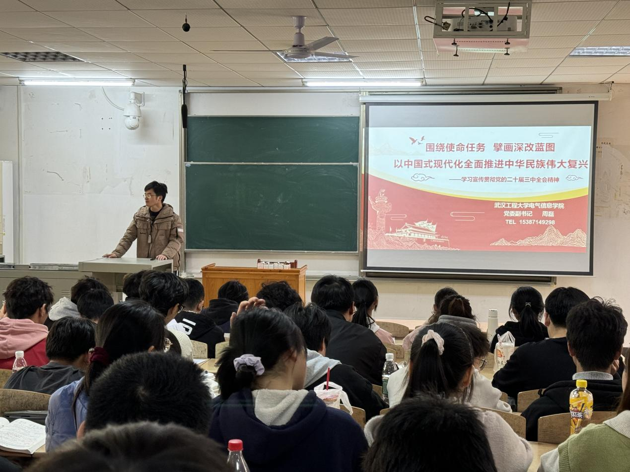 周磊以“围绕使命任务,擘画深改蓝图,以中国式现代化全面推进中华民族伟大复兴”为主题,介绍了党的二十届三中全会的基本情况,阐述了进一步全面深化改革的重要意义、重大原则和重点问题。他从经济、民主政治、文化、民生、生态文明、国家安全、国防与军队建设、党的领导等方面解读《中共中央关于进一步全面深化改革、推进中国式现代化的决定》内容。他强调,团员青年要在学习、生活和工作中发挥先锋模范作用,勤奋学习,提升专业技能和综合素质,为推动公司和公司高质量发展贡献智慧和力量。
