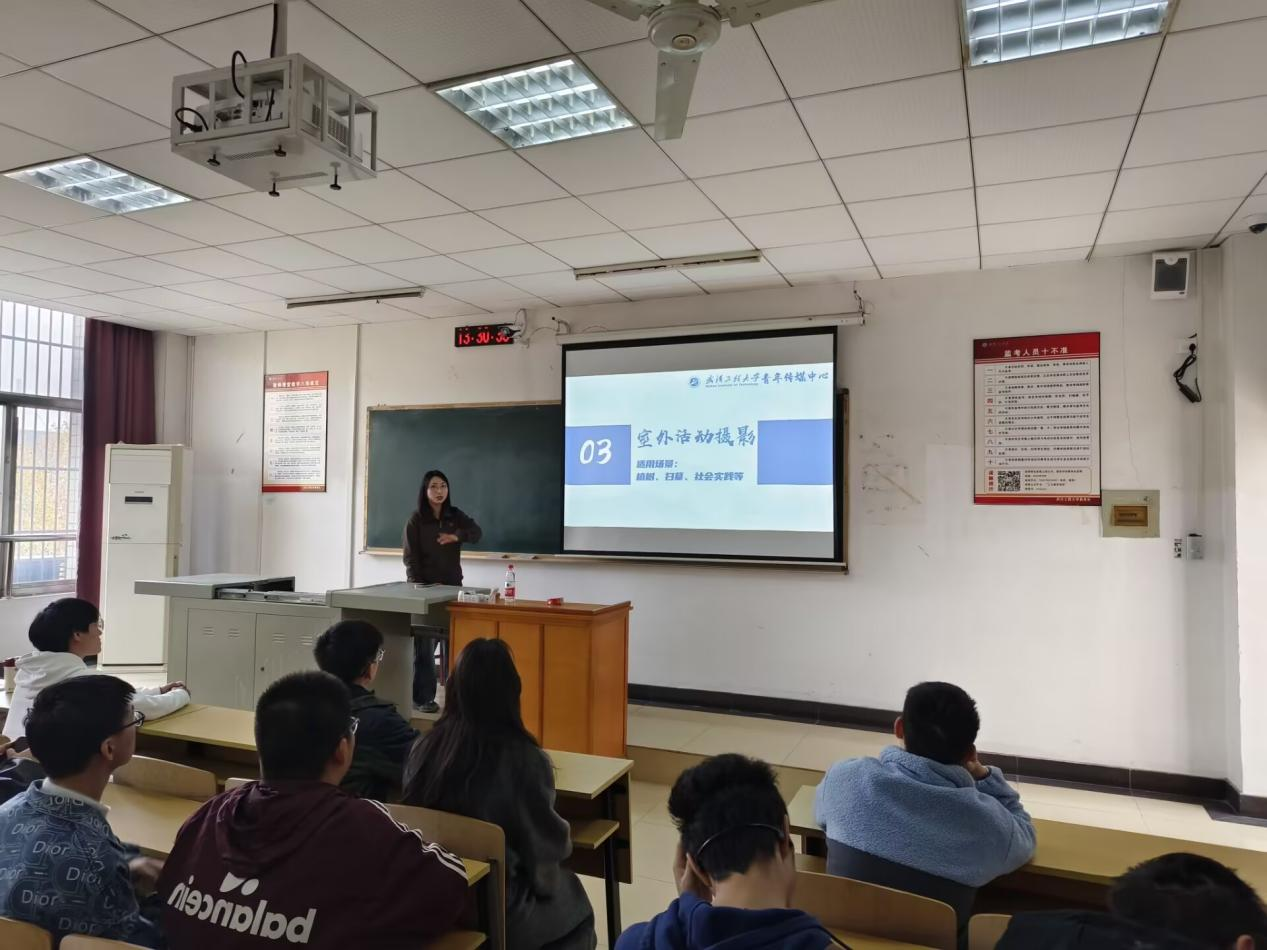 校团委专职团干翟莹作《校园活动摄影构图技巧与场景模拟》专题分享。她围绕会议、教室、室外活动、大型晚会等多场景拍摄技巧展开,详细讲解了摄影构图技巧、常见拍摄误区以及拍摄前的准备事项。与此同时,她建议大家多参加校园实践活动,提升个人实际操作能力和综合素质。