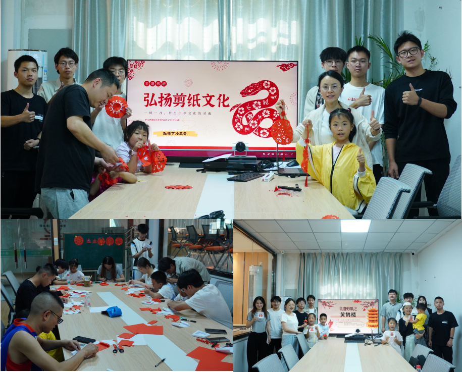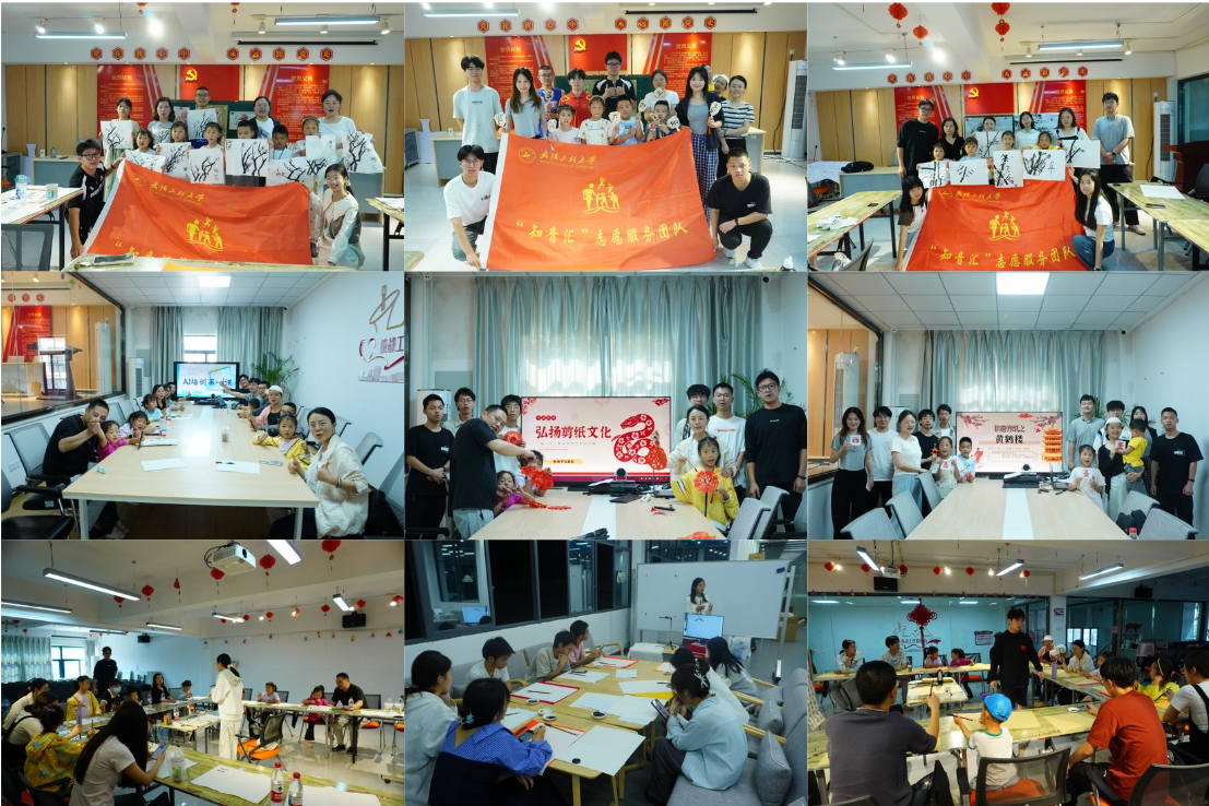 “非遗剪纸”系列课程从最基础的简易窗花入门,学员们将剪好的窗花与红绳结合,做成喜庆的剪纸挂件。课程内容还融入武汉特色文化,在志愿者的指导下,大家耐心剪刻武汉标志性的“黄鹤楼”,装裱在相框里成为独特的纪念品;在学雷锋月结合主题创作“雷锋”人物剪纸,感悟志愿服务精神;在不同节气时,志愿者将雪花、树枝、“春”等元素组合,粘贴成富有创意的剪纸贴画,在互动中让传统非遗文化在新时代焕发生机活力。