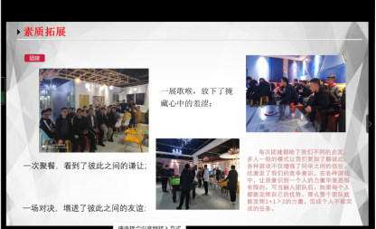 此次活动由本院组织部吴雪融同学主持,各班级依次对其支部进行讲解。各班精心准备的ppt充分展现了各个团支部团结、积极、向上的风采。比赛结束后,评委老师给予了精彩点评,肯定了同学们的表现,也指出了不足与努力方向。