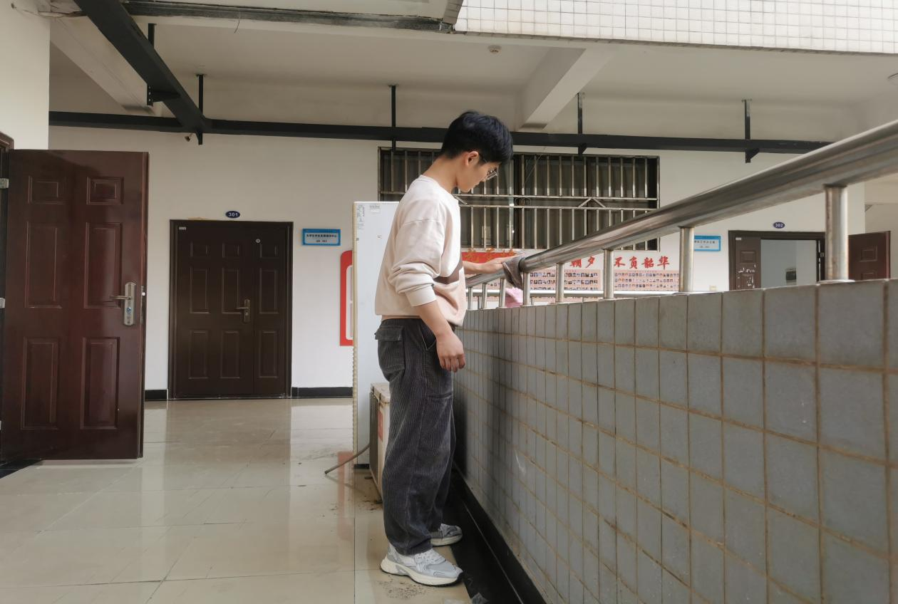 本次服务活动内容主要为打扫公司实验室及清理楼道扶手,门牌、宣传展板等。同学们在公司一楼大厅集合完毕后就拿着自带的工具分组到指定区域进行清洁打扫