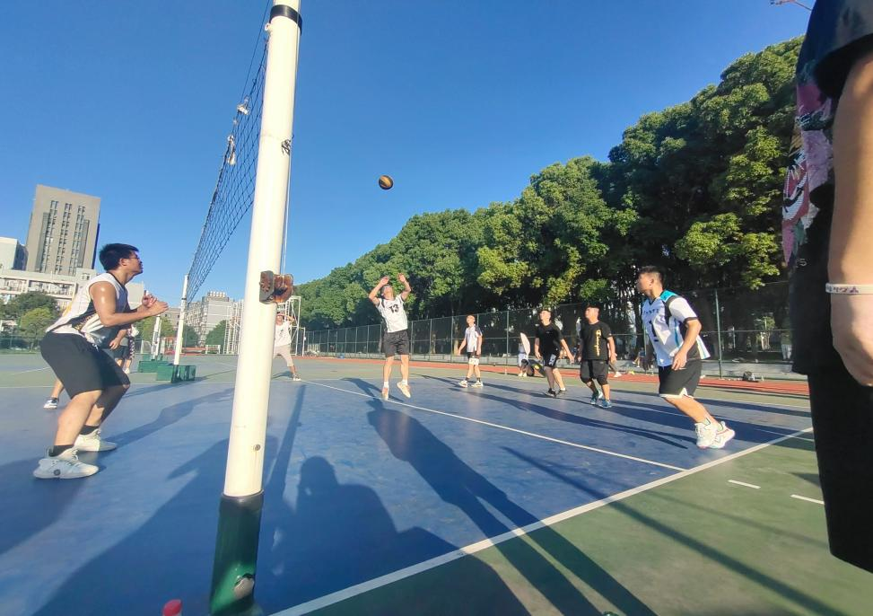 赛场周围站满了各队的队员,大家翘首以待这精彩的巅峰对决,正所谓“兵马未动,粮草先行”各方队员的加油助阵,让双方在开始时的气势上就难分高下。一声哨响比赛拉开了帷幕,参赛员工全身心地投入比赛中,他们个个情绪高涨。同学们在赛场上挥洒汗水、奋力拼搏,每一个垫球都凝集智慧与团结,每一次救球都尽显他们青春的活力。