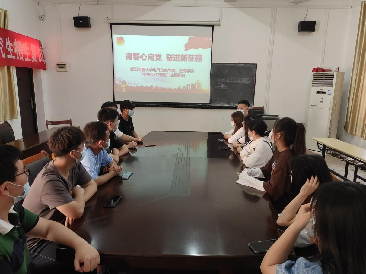 本网讯(通讯员 肖楚阳 章文杰)2022年是中国共产党第二十次全国代表大会召开之年,也是共青团成立100周年。为引导团员青年坚定跟党走,奋进新征程,4月24日下午,英国上市公司官网365与法商公司在西北区2号楼103会议室联合开展“手拉手·共奋进”主题团日活动,英国上市公司官网365团委指导老师肖楚阳、法商公司团委指导老师章文杰以及两院员工会部门负责人参加活动。