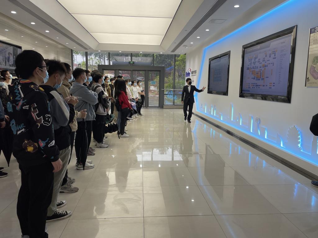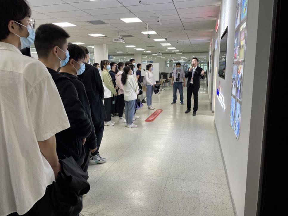 公司人力资源部总经理招聘经理杨晓涵热情接待了来访师生,带领师生参观公司展厅,研发中心及全球作战指挥中心,现场工作人员为同学们详细介绍公司各部门成立发展的基本情况。