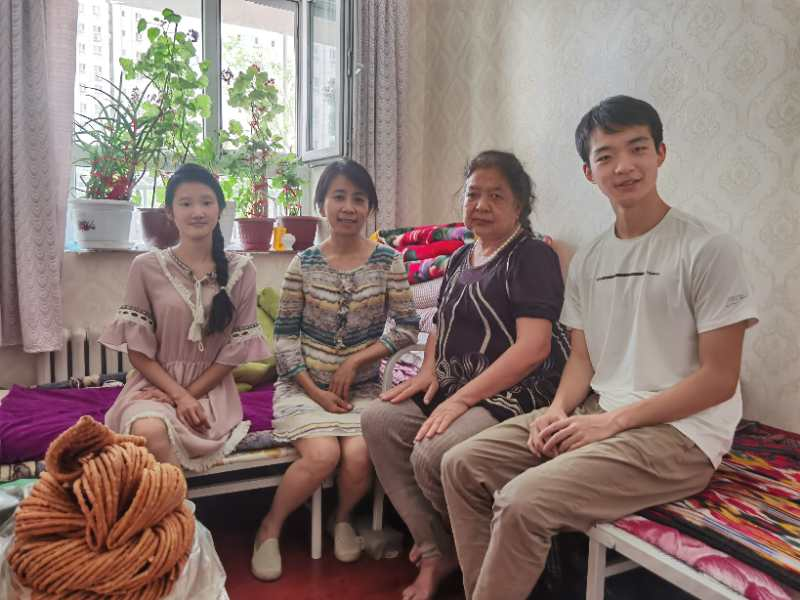 “亲戚”阿依图尔荪刚从喀什的一个村庄到乌鲁木齐打工时,家里最大的孩子才上小学。曲明轩一家经常走访慰问,帮助他们改善生活,帮助阿依图尔荪学习国家通用语言。