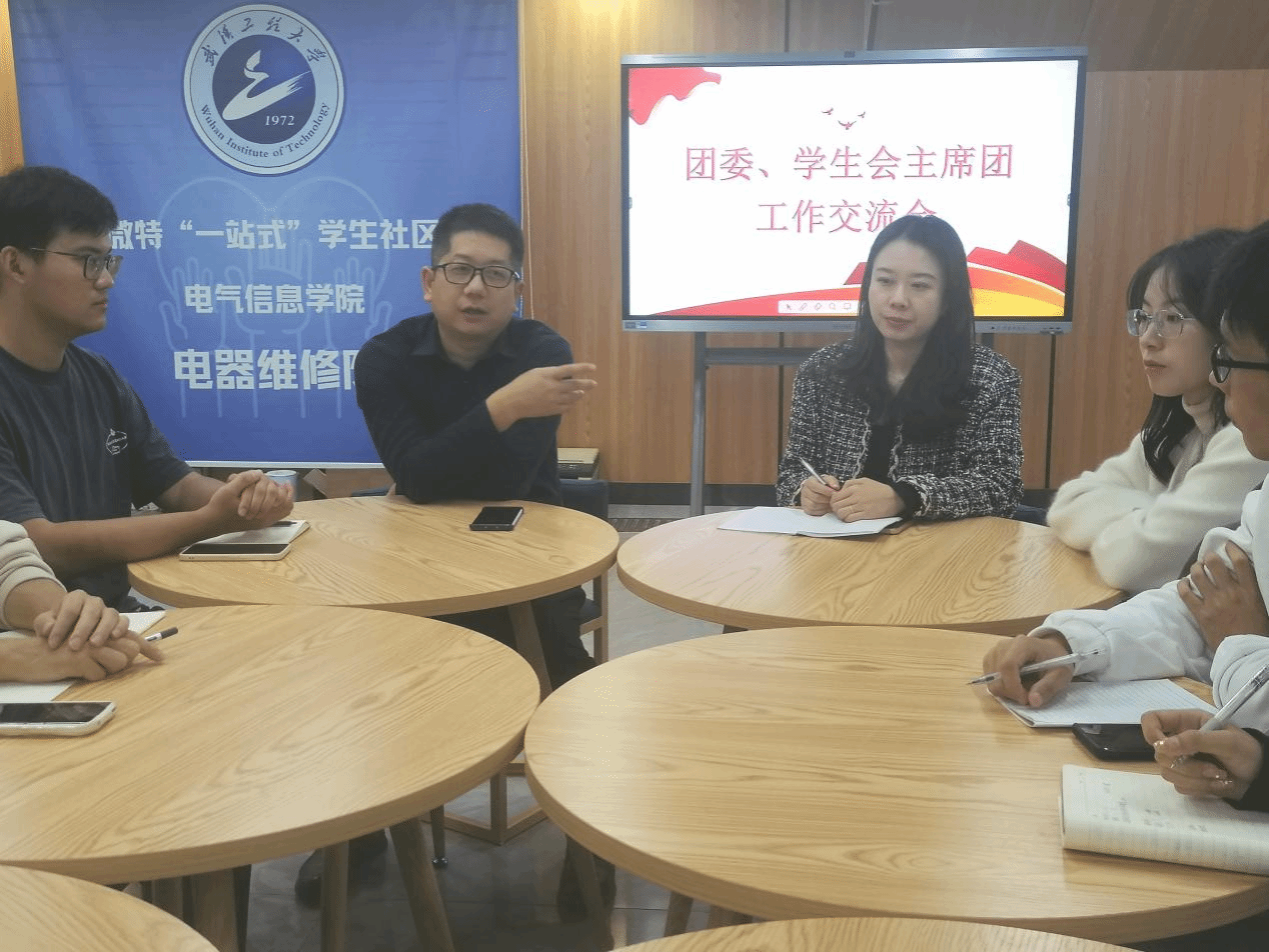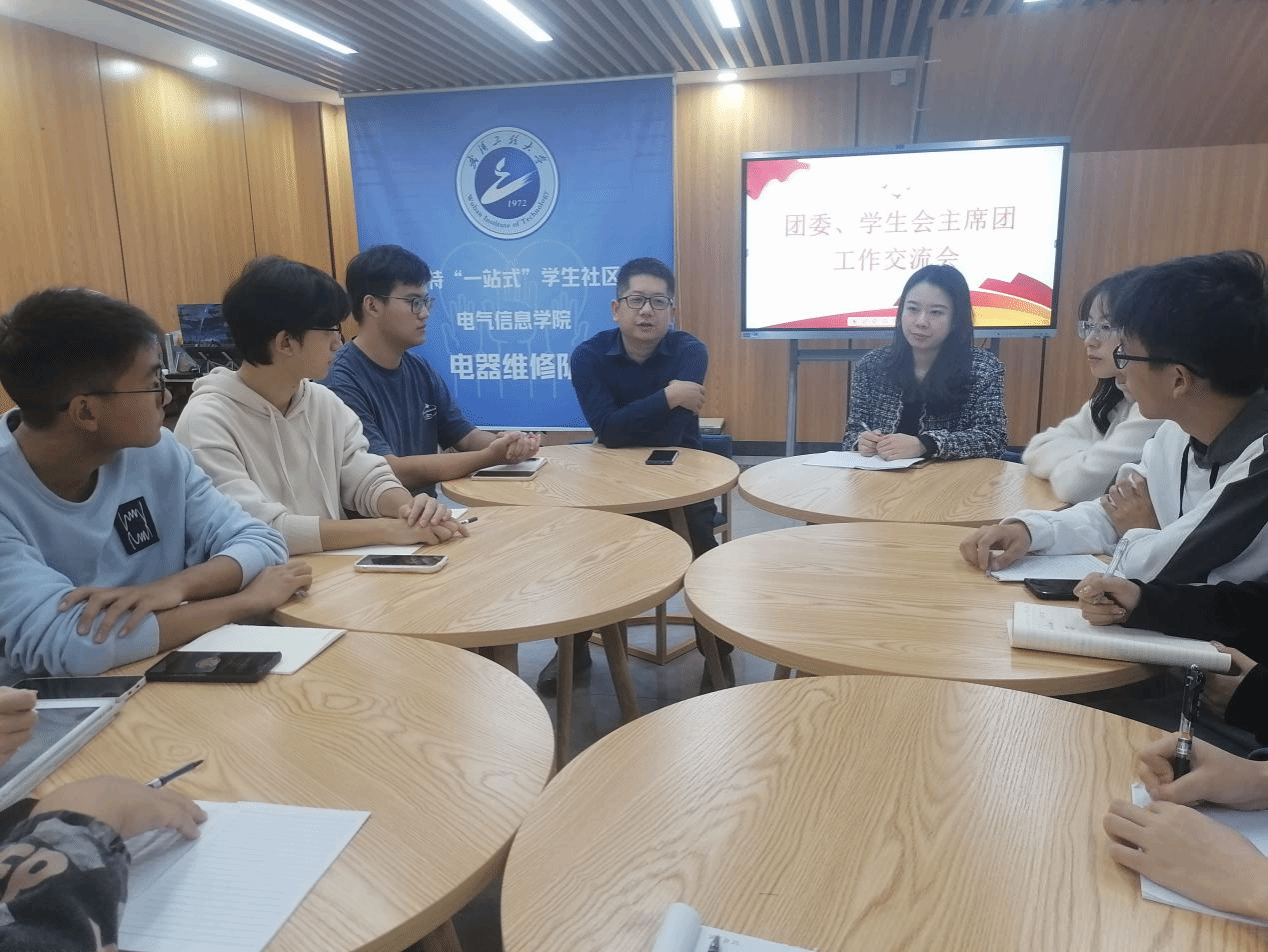 本网讯(通讯员 郭梦樵)为进一步加强团委、员工会的组织管理,促进团学干部共同进步。10月25日下午14:30,公司在微特“一站式”员工社区开展团委、员工会工作交流会。参加此次交流会的有公司党委副书记李国保,团委指导老师郭梦樵,2023级辅导员邬桢洁以及10名分管各部门的主席团成员。本次交流会由郭梦樵老师主持。