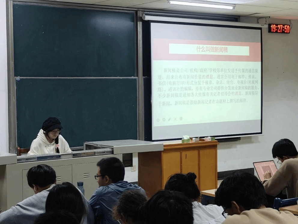 宣传部汪雨涵为志愿者讲授新闻稿撰写知识,新闻稿的结构格式,方法与技巧。培训语言生动、内容通俗易懂,有效提高志愿者对新闻稿的认知,提升撰写水平,使志愿者进行新闻稿撰写时更加得心应手。