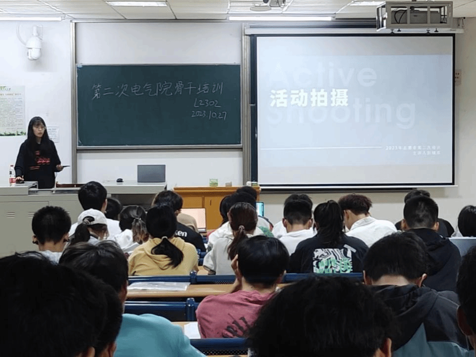 宣传部彭铖昊为志愿者传授活动拍摄的相关知识,教授了拍摄的通用技巧,并列举在拍摄上可能遇到的各类问题和解决方案,详细说明了在教室、室外、运动三种场景拍摄的方式方法,强调了11月运动会志愿者对接运动员拍照的注意事项,力求做到拍摄的精确、美观、生动形象、主题鲜明,更好的展现同学们的学习和运动风采。