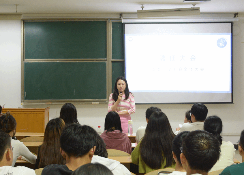 公司团委挂职副书记郭星锋老师依次宣读各部门负责人名单,并为各部门负责人颁发聘书。2023级辅导员邬桢洁老师宣读志愿者名单。