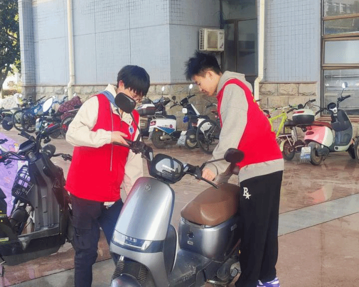 志愿者摆放电动车