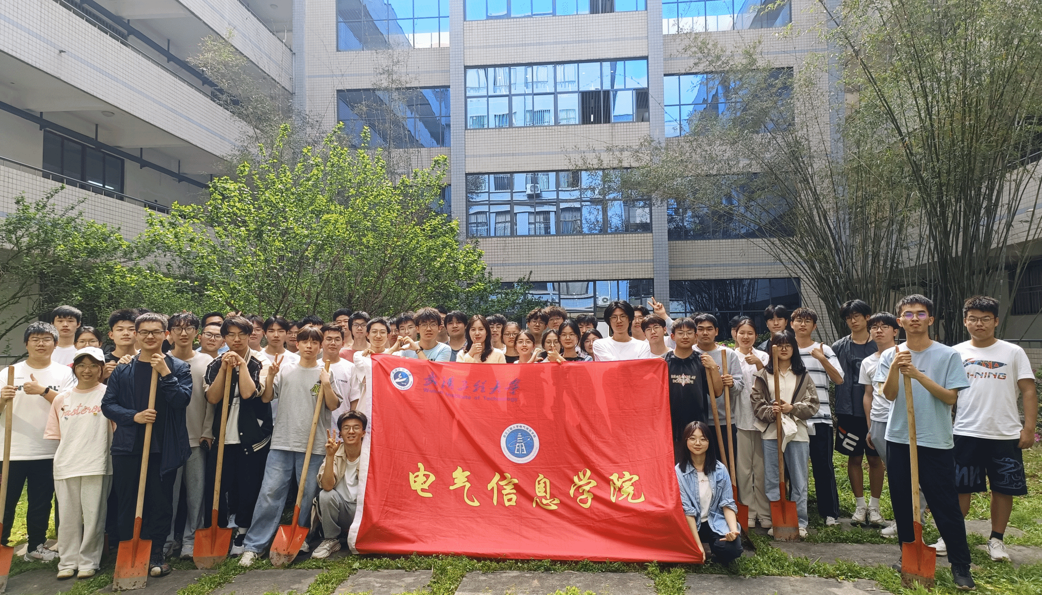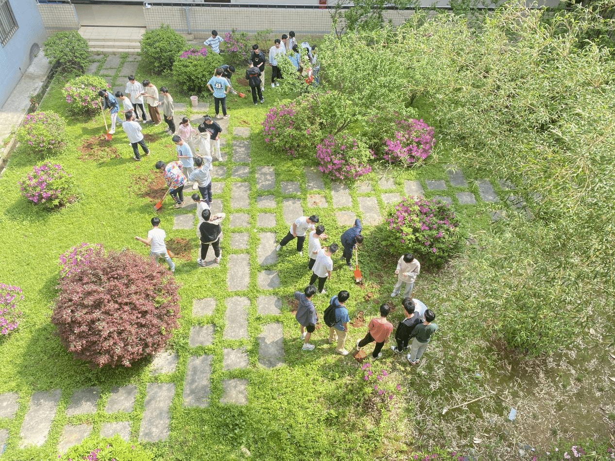 在辅导员邬桢洁的带领下,同学们拿起工具纷纷行动起来,大家分工明确,配合默契,有条不紊地展开了松土、平整、播种、浇水等工作。翻土和播种的过程并不轻松,但同学们的脸上却洋溢着快乐和满足的笑容。手握铁锹热情地投入到挖地除杂的活动中,经过一番辛勤劳作,原本荒芜的土地焕然一新,新鲜的泥土散发着沁人心脾的芬芳,等待着绿意盎然的树苗在此扎根生长。