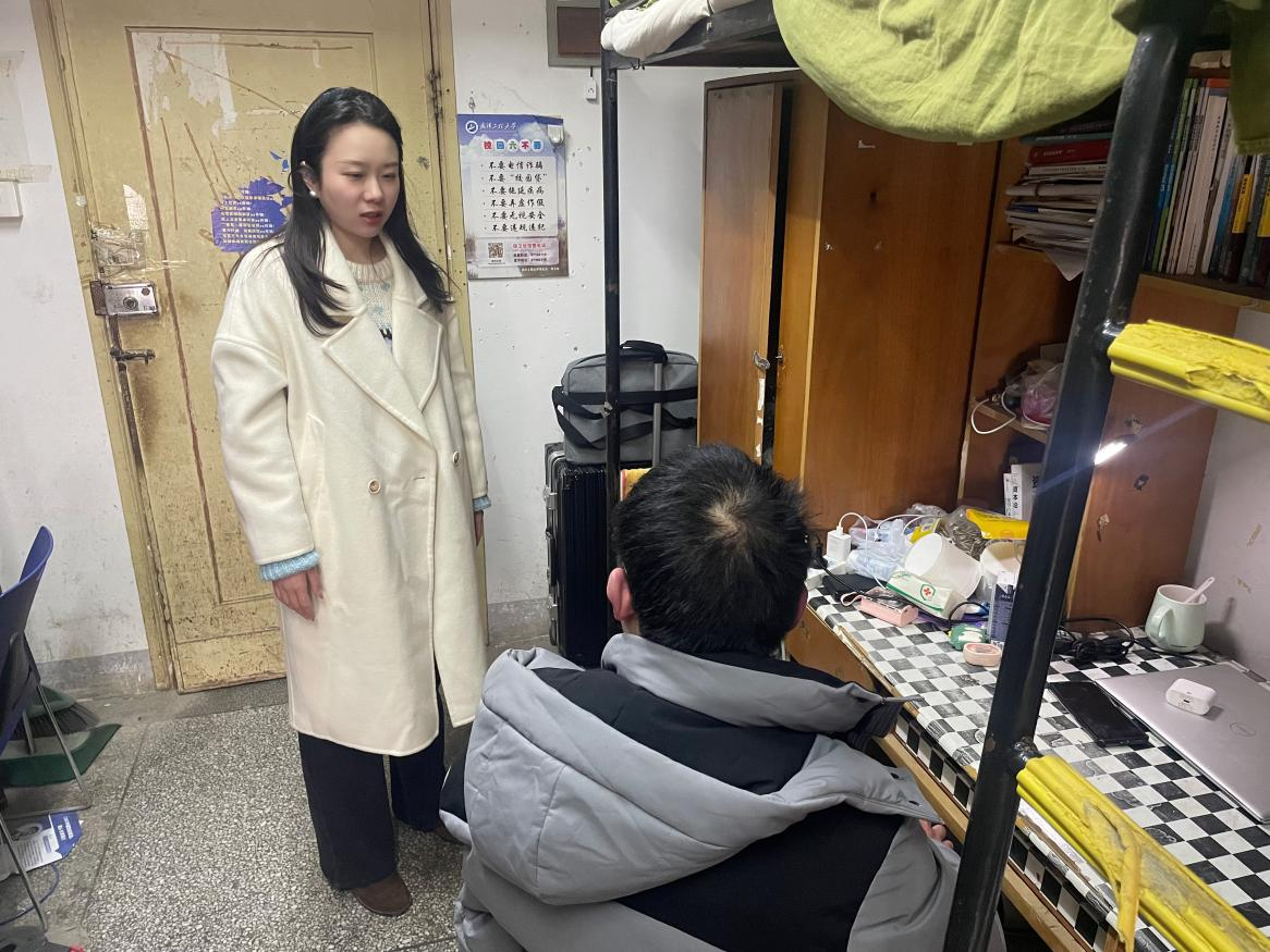 每到一间宿舍,老师们都与员工亲切交流,仔细询问员工寒假春节生活情况、新学期的目标规划,耐心倾听员工在学习、生活中存在的困难和思想上的困惑。各位老师建议同学们要及时调整作息时间,合理制定学习目标,提醒大家要注意防火、防盗、防诈骗,增强安全意识和健康防护意识,对存在卫生问题的宿舍提出整改要求。对毕业生关心的就业与考研复试问题,辅导员结合当前考研、就业形势,分享了一些求职和复试技巧。