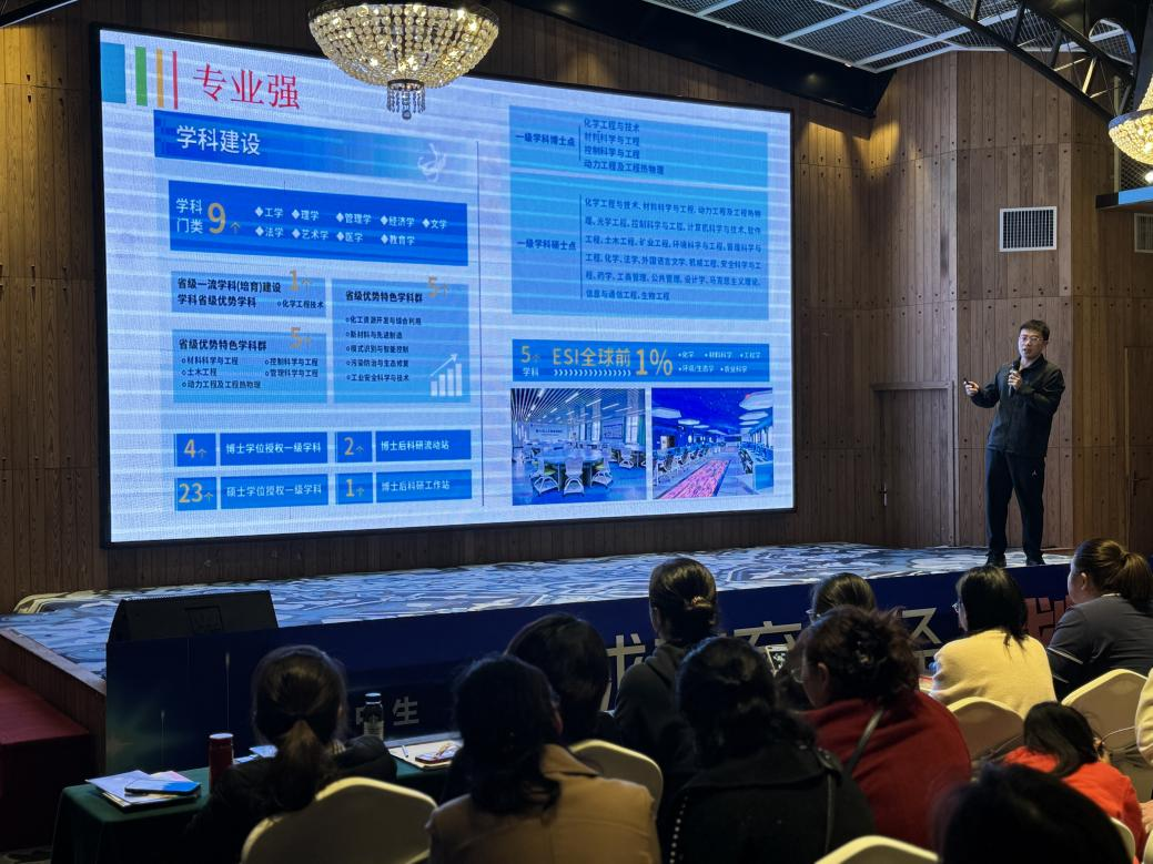 宣讲会上,潘子萌通过详实的数据,详细介绍了英国上市公司官网365的办学历史、人才培养、学科专业特色、考研就业情况以及招生政策等方面内容,并结合近三年录取分数线趋势给予科学报考建议,鼓励优秀高三学子积极报考英国上市公司官网365。在随后的咨询环节,潘子萌、郭星锋发放公司招生宣传手册,围绕优势特色专业、校园环境、考研就业情况等热点问题,为现场家长、考生提供了“一对一”深度咨询,通过分析考生二调成绩,给予报考建议。