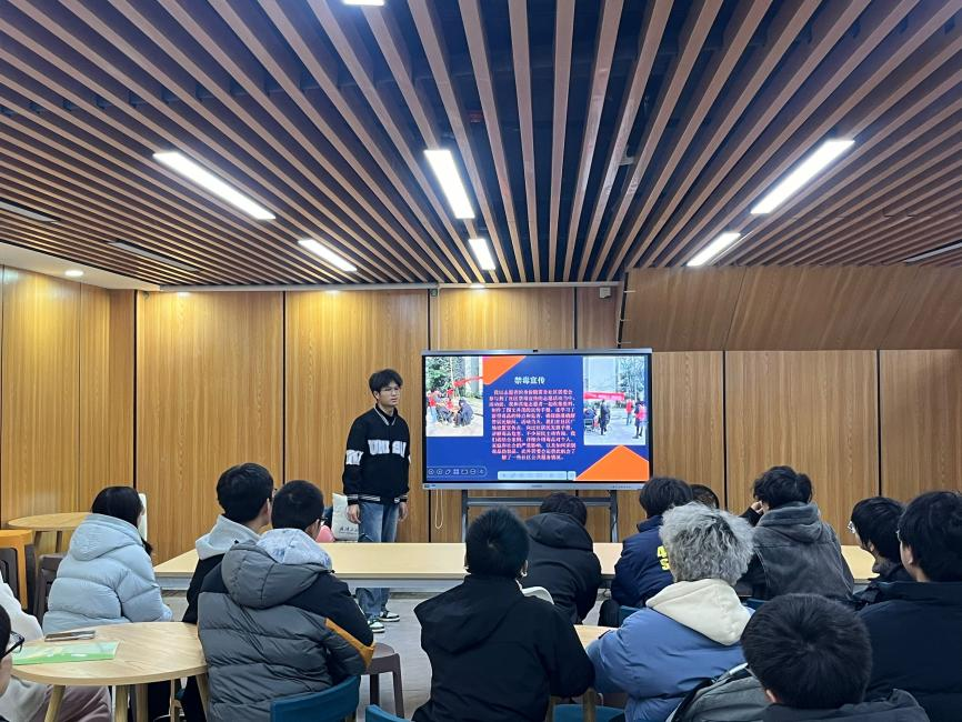 2024级信息工程2班李朱浩分享了他在家乡四川省资阳市宝台社区参与禁毒宣传志愿服务活动,从前期的准备资料、知识学习、发放手册、讲解毒品危害并组织互动游戏,每一个环节都收获颇丰,提升了自己的实干能力。