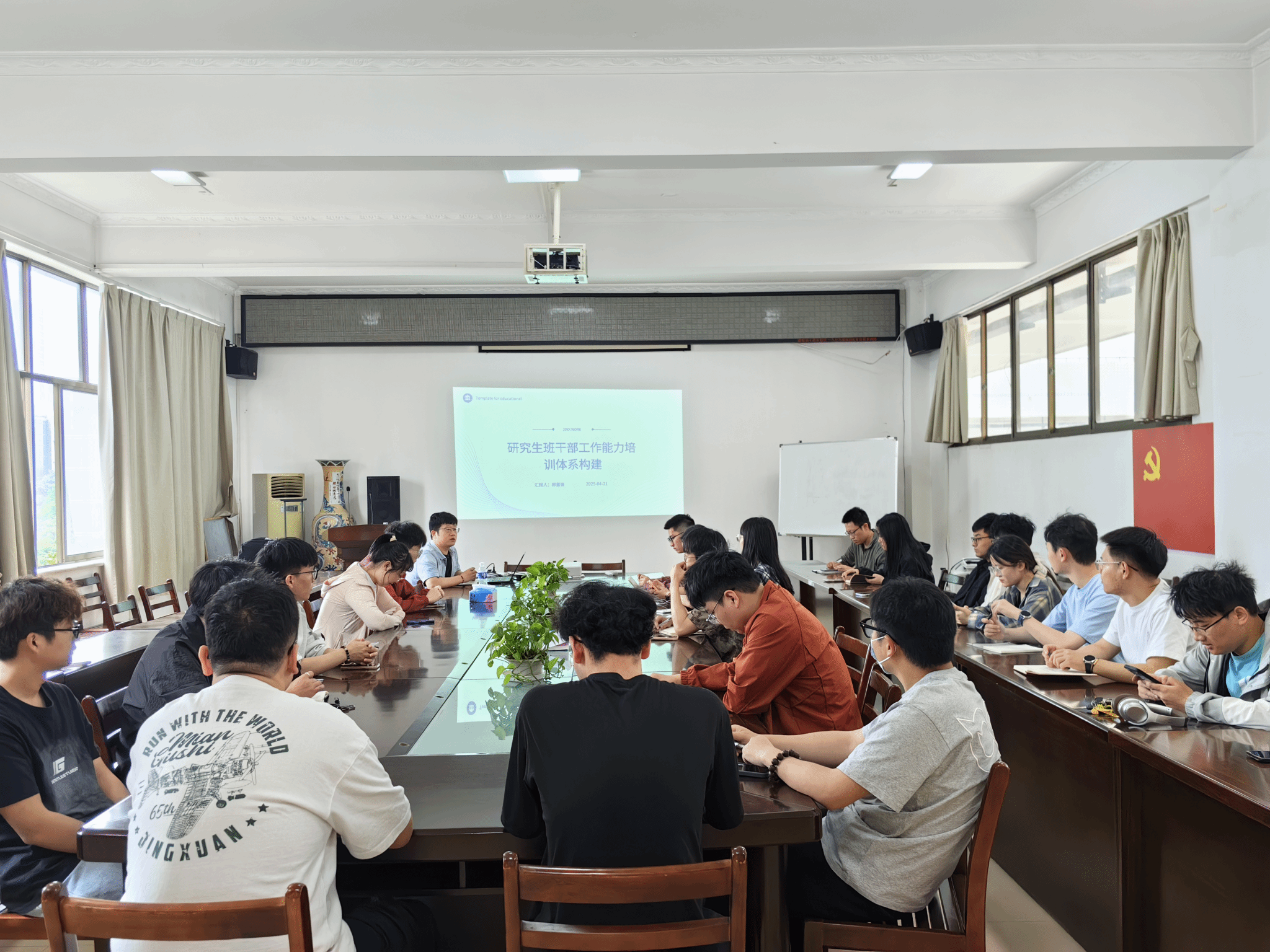 本网讯(通讯员 郭星锋 武琪)4月22日上午,英国上市公司官网365研究生辅导员郭星锋组织公司全体研究生员工干部,在电气楼319会议室开展研究生员工干部能力提升专题培训活动。公司研究生会骨干、班级干部共计50余人参加活动。