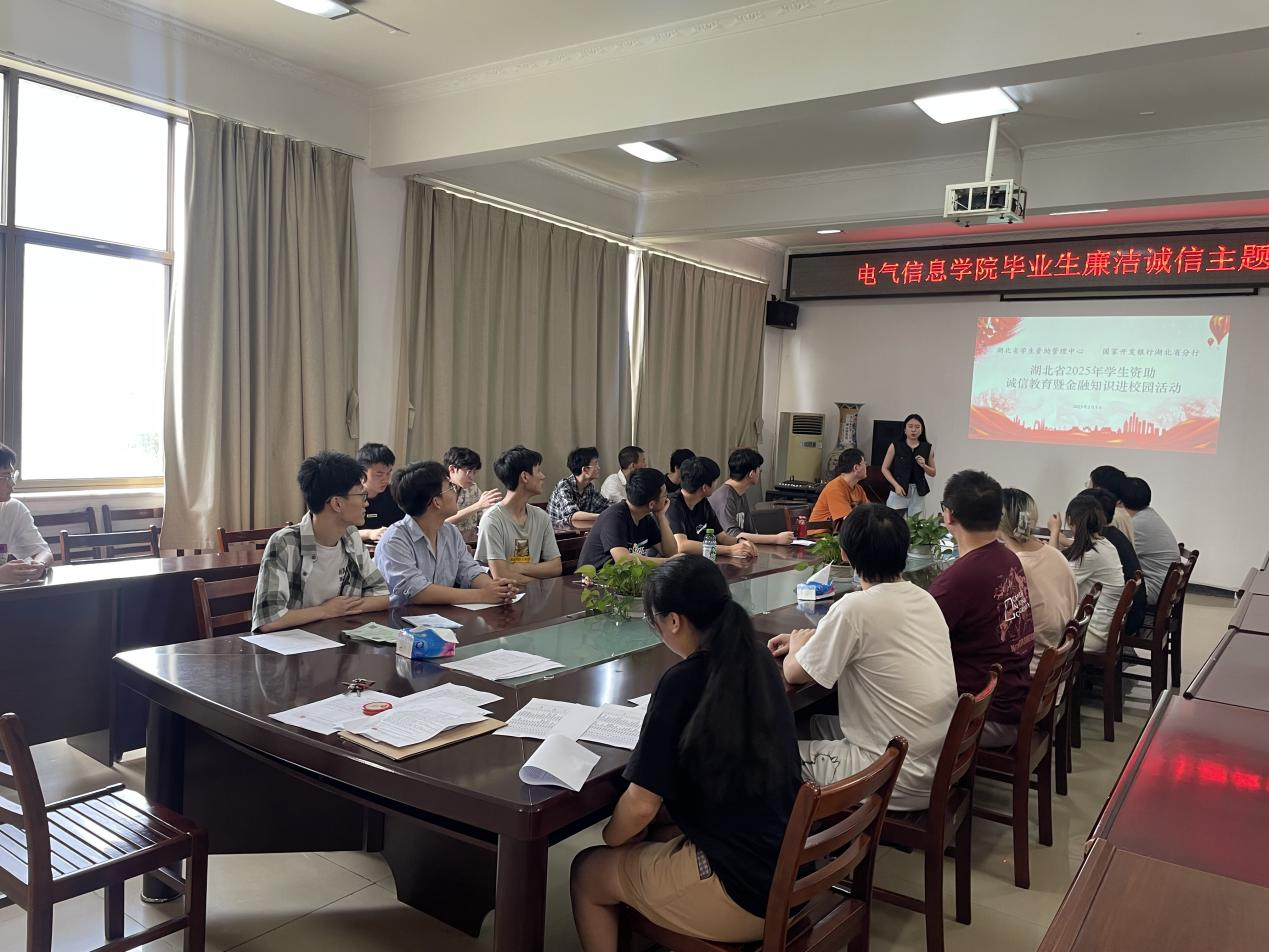 郭梦樵带领大家观看了《征信修复是骗局》等诚信教育视频,结合近年来的典型案例,深入剖析了廉洁诚信在个人发展、行业规范以及社会稳定中的重要性,揭示了违背廉洁诚信原则所带来的严重后果,让毕业生深刻认识到廉洁诚信的重要性。郭梦樵讲解了生源地助学贷款还款政策、还款流程和还款方式,要求同学们履约守信意识。