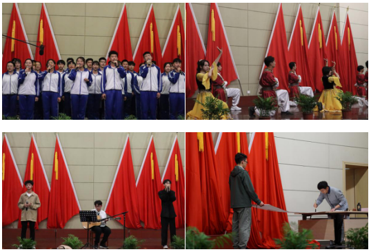 会中,为引导师生主动“学党史、强信念、跟党走”,员工用精彩绝伦的表演献礼建党100周年。《党的赞歌》、《永远跟党走》、《庆七一诗歌》的朗诵大气磅礴,重温了在座师生的入党初心;《没有共产党就没有新中国》的大合唱掷地有声,激起了在座师生的奋斗决心;《新疆民族舞》、《少年》的歌舞演绎热情澎湃,坚定了在座师生的奋斗信心。