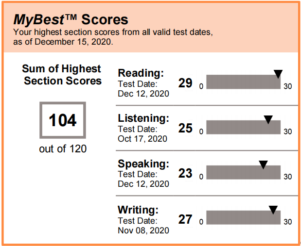 托福 102 (阅读-29, 听力-24, 口语-23, 写作-26)