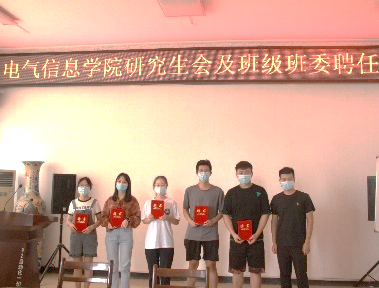 大会在响亮的国歌中拉开序幕,黄光亮老师宣布研究生会成员、班级班长、团支书名单后,研究生会主席团成员代表鲁贝为各班班长、团支书颁发聘书,黄光亮老师为主席团成员颁发聘书。