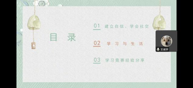 2020级测控技术与仪器专业王诚宇学长在专业课的学习和竞赛方面做了详细讲解,同时就老员工人际交往的心得体会,如何提高社交能力做经验分享