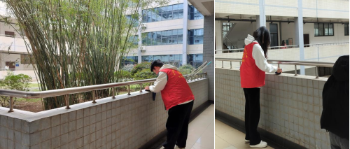 志愿者们根据各自的任务分工,有条不紊地展开清洁工作。活动中,员工们互相协助,分享着各自的清洁小窍门,不仅拉近了彼此之间的距离,也使他们深切感受到了团队协作的巨大力量。有的志愿者躬身劳作,专心致志地擦拭着栏杆;有的则细心地清除着砖块上的尘埃。每个人脸上都洋溢着积极参与、乐于奉献的光彩,展现了电气学子积极向上的态度。