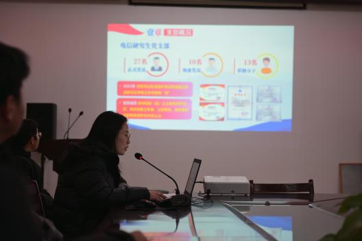 注入发展活力,畅谈青春成长。电信研究生党支部罗欣分享在党旗引领下,以勇于探索、敢于创新的精神,在科学研究中锐意进取,获得研究生国家奖学金等荣誉,体现出作为一名共产党员的先锋模范作用,激励在场的同学们不忘初心、砥砺前行。新发展党员彭光彩分享了入队、入入党的思想历程,表达了初心如磐志愈坚,逐梦前行勇担当的信念与追求。与会同学围绕学习方法、科研实践、职业规划等话题展开了热烈讨论和经验交流