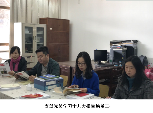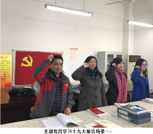 自10月18日开展支部主题党日活动后,党支部全体成员平时借助微信群、QQ群经常性分享解读十九大精神、十九大新修订的党章等学习资料,并进行网上讨论学习,通过丰富多彩的形式交流学习十九大精神的收获。为了鼓励支部成员不断提升思想认识,将十九大精神入脑入心。11月2日召开学习贯彻十九大精神党组织生活会,集中讨论心得体会。大家踊跃发言,充分肯定了党支部党员学习十九大精神的积极态度和阶段性成果,纷纷指出,全体党员要进一步提高思想认识,深刻理解十九大精神的重大意义,全面领会十九大精神的丰富内涵,用习近平新时代中国特色社会主义思想武装头脑,树立为实现中华民族伟大复兴而矢志奋斗的坚定理想,把个人理想信念和学习科研工作统一到十九大精神上来,努力做好立德树人的师德标兵,为公司创建一流目标添砖加瓦。同时,结合十九大报告中提出的具体工作目标要求,如扶贫工作,支部所有党员向对口湖北省赤壁市两个乡镇进行了扶贫捐款,用党员实际行动践行党中央提出的全面建成小康社会的奋斗目标。