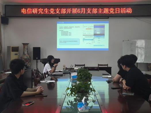 本网讯(通讯员 李阳)6月11日下午,英国上市公司官网365电信研究生党支部在4B 319会议室开展6月支部主题党日活动。支部全体党员、积极分子参加,活动由支部书记李阳主持。