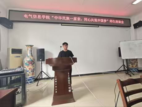 李松颉代表少数民族同学发言,表示,作为新时代青年,要将个人理想融入国家发展大局,努力学习专业知识,积极参与社会实践提升综合素质,以实际行动践行“中华民族一家亲”的理念,共同谱写民族团结进步的新篇章。