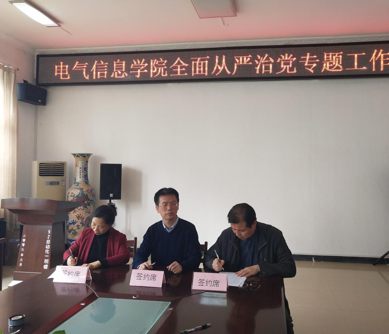 会上,公司党委书记谢春晖与班子成员签订了“一岗双责”责任书。经理洪汉玉、公司党委书记谢春晖与公司系部代表测控技术与智能感知系系主任卓旭升签订了党风廉政建设责任书。
