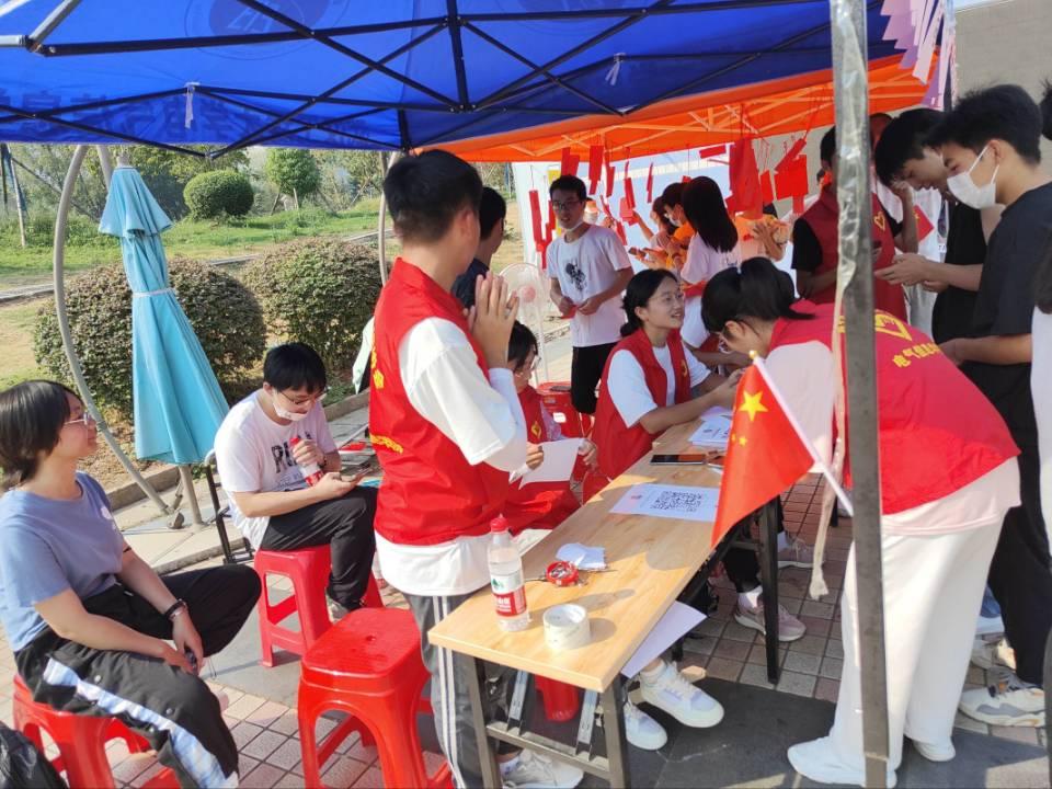 上午8点,公司员工会社会实践部与志愿者协会共同布置现场,此次活动,公司志愿者们精心准备了新颖的题签以及听红歌猜歌名环节,竞答试题涉及党的二十大、党的十九届六中全会精神及党史团史校史,通过知识竞答的形式促进同学们对党团知识和国情校史的了解。公司还为优秀答题者准备了50周年校庆帆布袋、钥匙扣、礼品袋、口罩等纪念品。