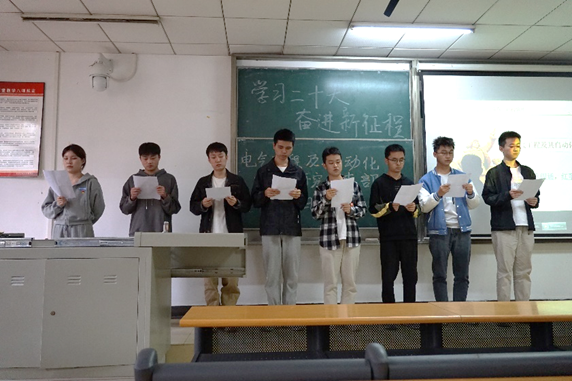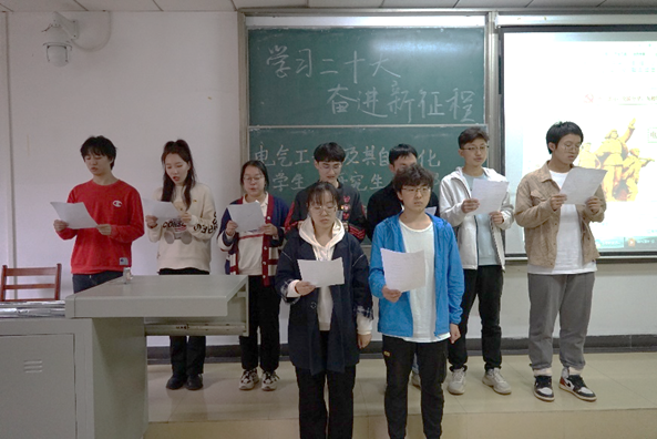 电气工程及其自动化员工党支部成员通过“诗歌朗诵”和“献唱红歌”的形式带领大家重温红色经典,通过回顾党的百年风雨历程,进一步体会到了老一辈革命者对共产主义理想的追求,更好地感悟到信仰之力、理想之光,同时激励大家坚定理想信念,强化责任担当,将传承红色基因、践行初心使命转化为促进专业学习的不竭动力。