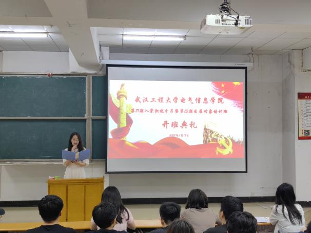 第13期发展对象培训班学员代表2021级智能控制与技术2班的喻子西发言,她结合自己对党的认识,表达了向党组织靠拢的热切希望,号召大家坚定理想信念,团结同学,关心集体,立志做有理想、有担当、能吃苦、肯奋斗的新时代好青年。第71期入党积极分子培训班学员代表2022级电气工程及其自动化3班的高日新发言,她结合学习党的光辉历史和伟大建党精神,鼓舞大家把个人奋斗融入到民族复兴的时代洪流中,让蓬勃青春与家国情怀同频共振,将个人发展与祖国前途命运紧密结合,成就一番事业,建设伟大祖国。
