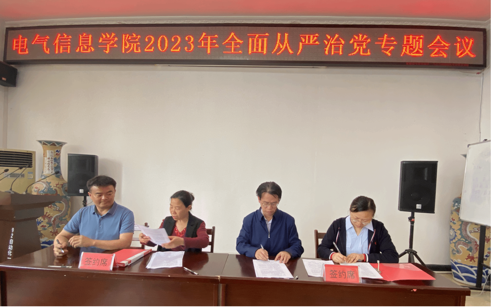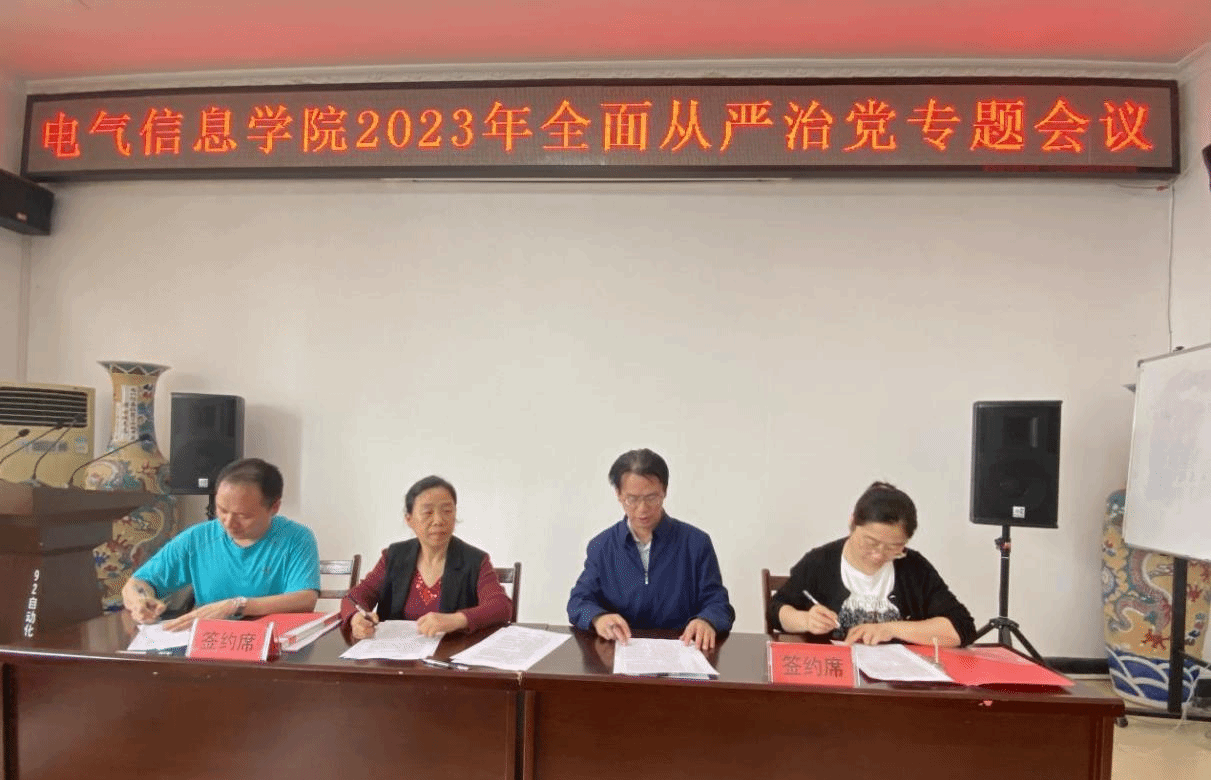 会上,公司党委书记谢春晖、经理洪汉玉与班子成员签订“一岗双责”责任书,与系部主任和党支部书记代表签订2023年党风廉政建设责任书。