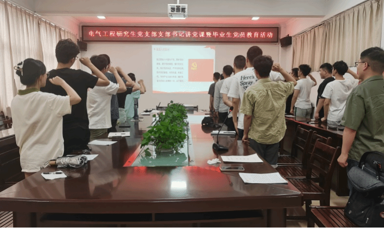 落其实者思其树,饮其流者怀其源。电气工程研究生党支部始终坚持党建引领,充分发挥党组织的战斗堡垒作用和党员的先锋模范作用,培养了一批批优秀的党员。作为与新时代同向同行、共同前进的一代青年人,生逢盛世,肩负重任,希望2023届毕业生党员在离开校园后能够不忘入党初心,坚定理想信念,在进入新的工作或学习岗位后继续发挥党员先锋模范作用,立大志、明大德、成大才、担大任,努力成为堪当民族复兴重任的时代新人,努力实现新时代党员的新担当、新作为,披荆斩棘,再创佳绩,在实现中国梦的生动实践中放飞青春梦想,在不懈奋斗中绽放青春之花!