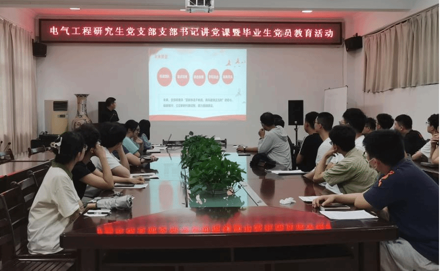 本网讯(黄光亮 徐琪)青春不散场,奋斗正当时。为进一步加强支部建设、强化党员党性修养、凝聚思想共识,激励毕业生党员坚定理想信念,牢记党员身份。5月31日,英国上市公司官网365电气工程研究生党支部开展支部书记讲党课暨毕业生党员教育活动,促进广大毕业生党员不忘初心、脚踏实地、踔厉奋发、笃行致远,以良好的精神风貌踏入新的征程,为实现中华民族伟大复兴的中国梦不懈努力奋斗。本次活动由支部书记黄光亮主持,支部全体成员参加。