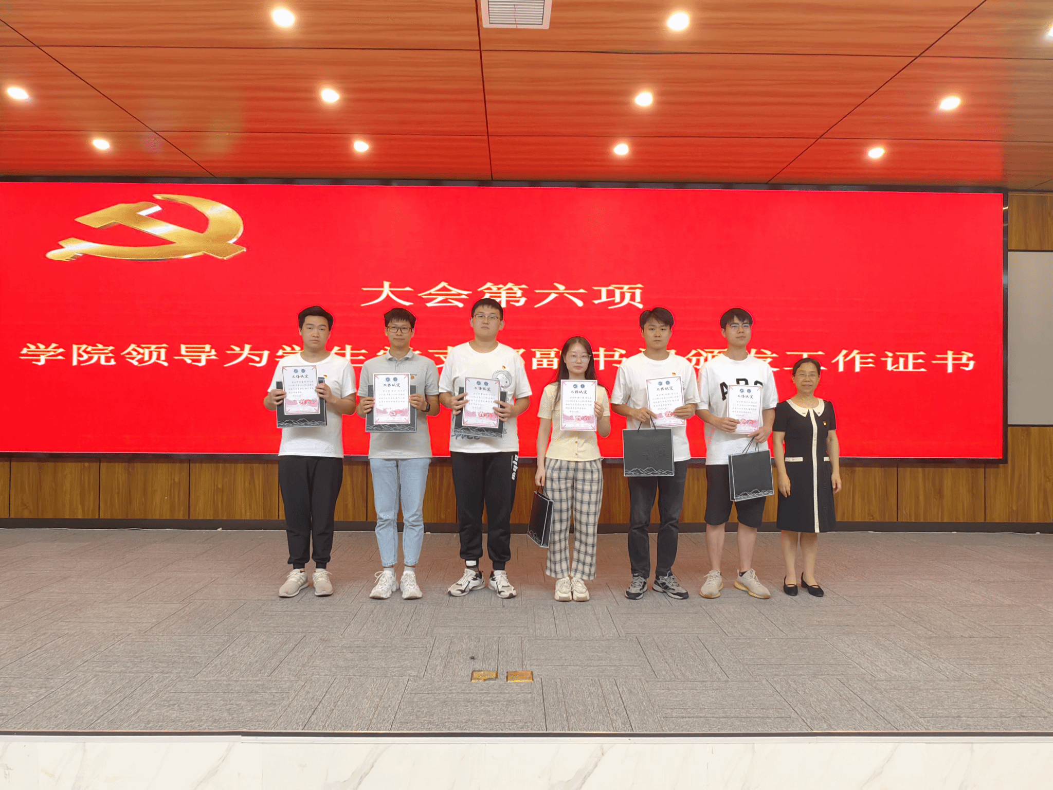 会上,公司领导为毕业生党员担任支部副书记的同学颁发了工作证书,为全体毕业生党员依次发放了党员纪念品。
