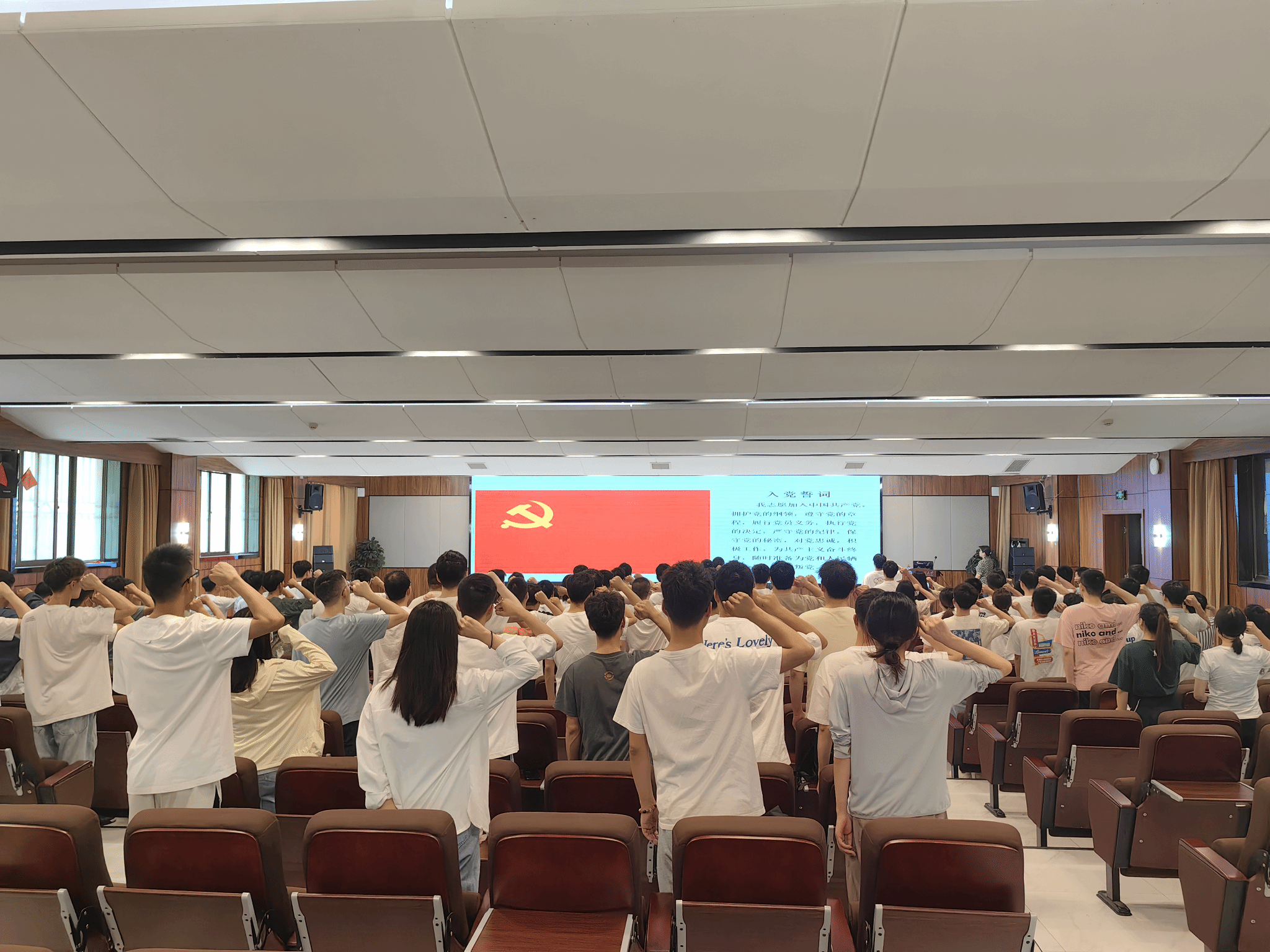 大会在庄严激昂的《国际歌》中拉开序幕,电信研究生党支部副书记刘顿带领全体党员同志重温入党誓词,重拾初心使命。