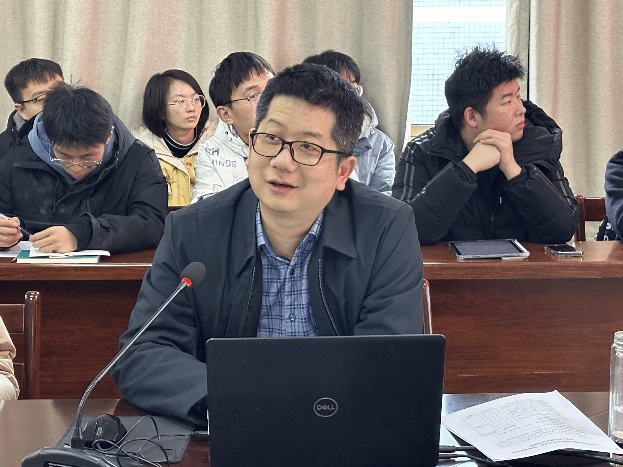 李国保就《党支部基本党务知识及工作规范》做了详细指导,他从支部开展工作的文件依据引出教工党支部和员工党支部的工作职责,就支部书记及支部委员的工作内容做了详细说明,为新一届支部委员开展工作指明了方向。