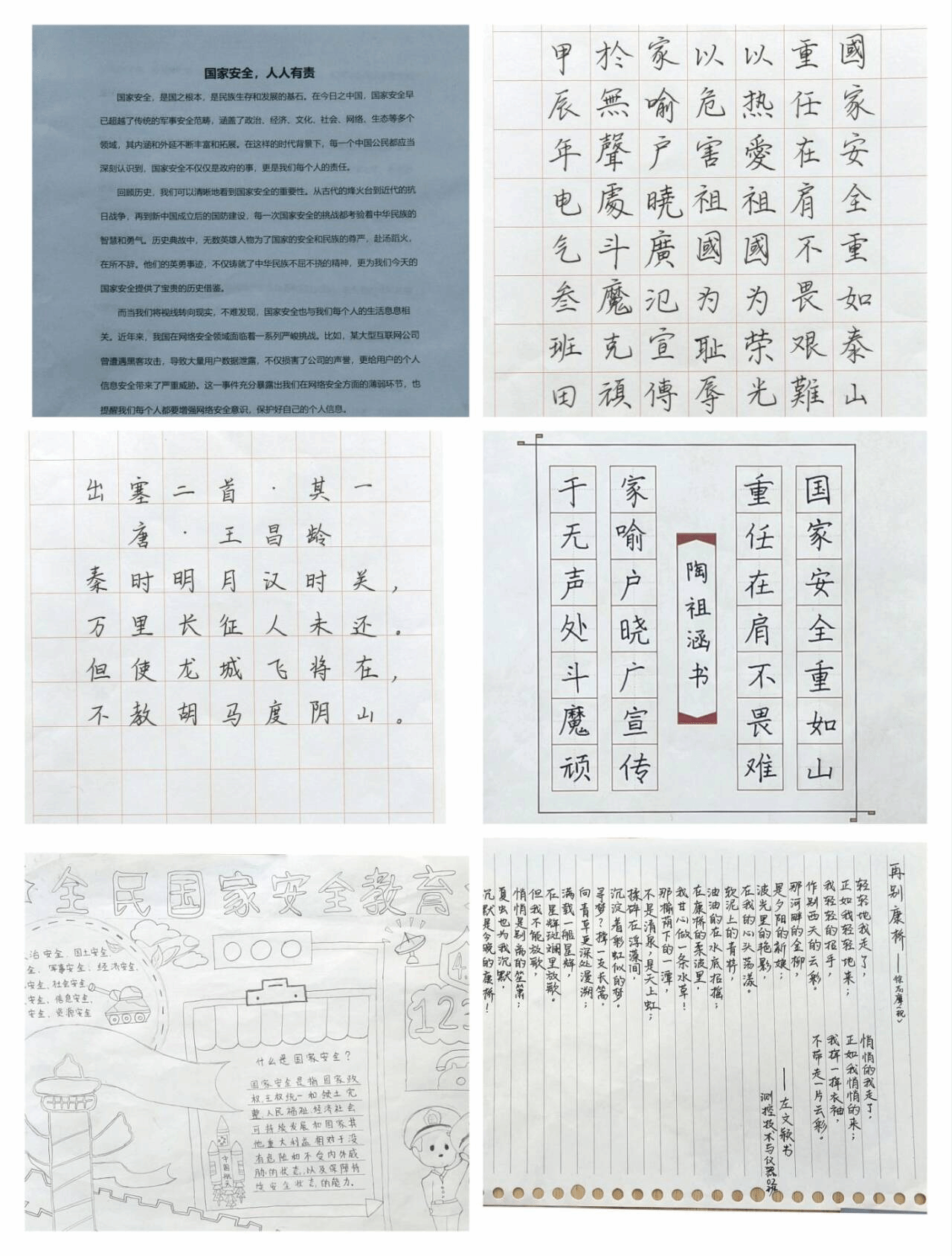 为了增强国家安全教育宣传的针对性、实效性,营造学习国家安全知识的浓厚氛围,4月初公司开展了国家安全日专题书画作品征集比赛,用艺术传递爱国情怀。活动一经启动便引发了各专业员工的热烈响应。他们纷纷以独特的艺术作品,表达对国家安全的深刻理解和坚定信念。书法的每一笔、每一划都凝聚着参赛者对国家未来的美好憧憬和无限期望;有的征文作品则以细腻的笔触,书写着对国家安全的深刻理解和感悟,主题鲜明,内容丰富,既有对国家安全战略的深入解读,也有对日常生活中维护国家安全的点滴体会。每一份作品不仅充分展示了同学们的艺术才华和创作能力,更展现了他们对国家安全蓝图的美好愿景,为本次国家安全教育系列活动增添了浓墨重彩的一笔。