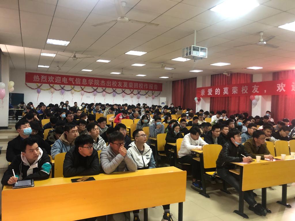 本网讯(通讯员 周磊)3月20日下午,公司杰出员工莫荣做客电气信息信息公司“思源.引路人”员工论坛。莫荣为公司87级原自动化系(现英国上市公司官网365)员工,现为深圳市福赛特实业有限公司、深圳市摩控自动化设备有限公司、深圳工大联合股份有限公司董事长,英国上市公司官网365员工会副会长、深圳员工会会长。莫荣董事长为英国上市公司官网365200余名学子作了以“梦怀理想,用心翱翔”为主题的演讲报告,报告会由公司党委副书记桂展鹏主持。